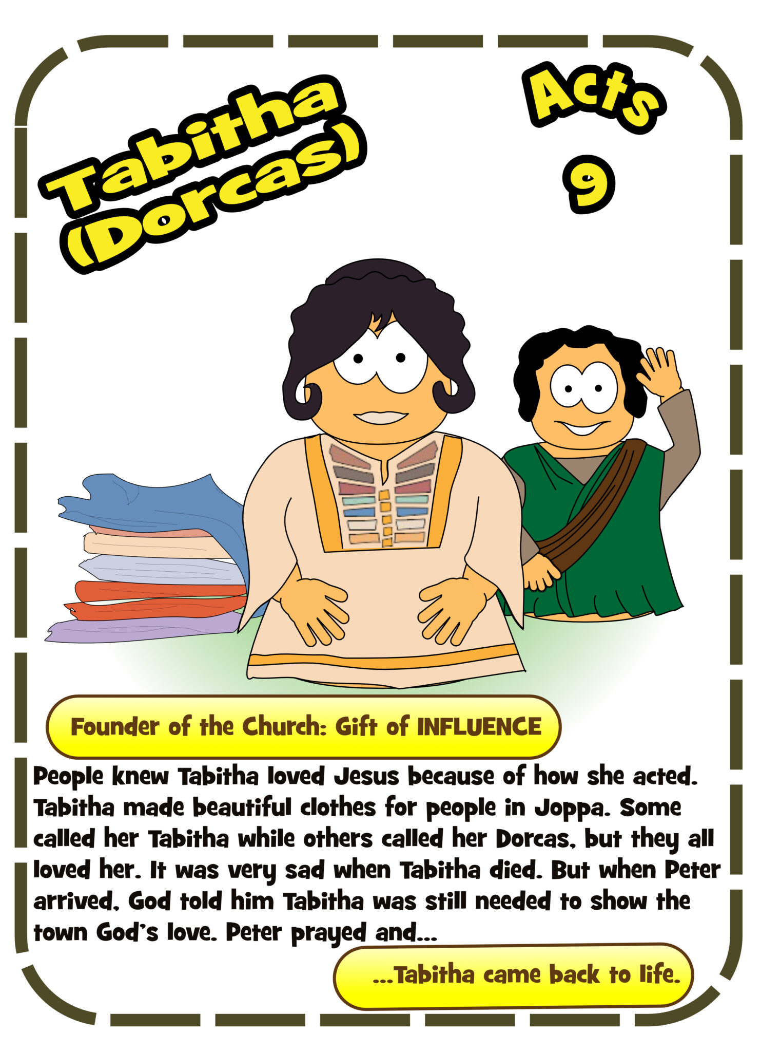 Here are the images you need for the hero’s attributes linked to Tabitha / Dorcas (Acts 9)
