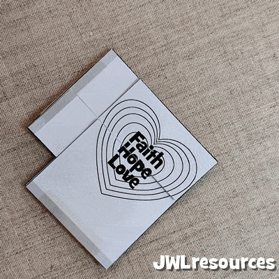 Have a love hunt. Write the letters F,A,I,T,H,H,O,P,E,L,O,V and E on 13 hearts and hide them around your area. Have the youngsters find the hearts and make the three words.