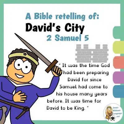 David has finally become king, he’s leading his new army with the crown on his head to the city of Jerusalem, intent on making it his home base. These games tie into different parts of the story, David’s crown as king, the crawling through the water shaft and the strategic position of Jerusalem.