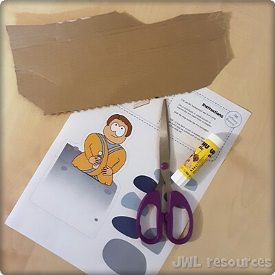 To make this craft, you will need the 1-page template printout, scissors, and some paper glue.