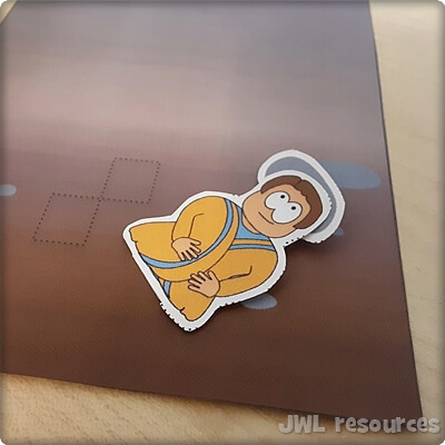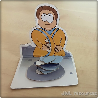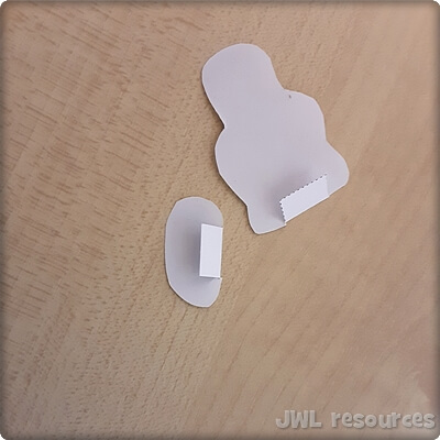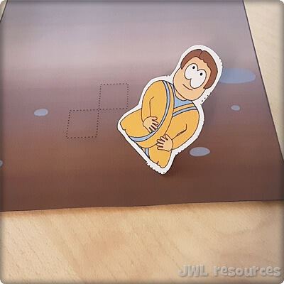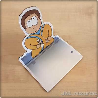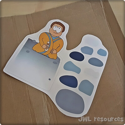 Fold the tabs on Jacob and the stone backwards