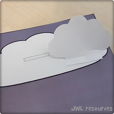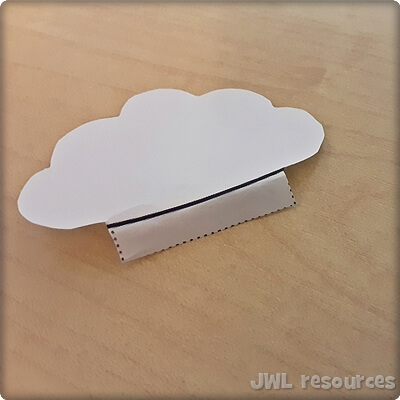 Gently crease the tab on the small cloud so it does not lay flat.