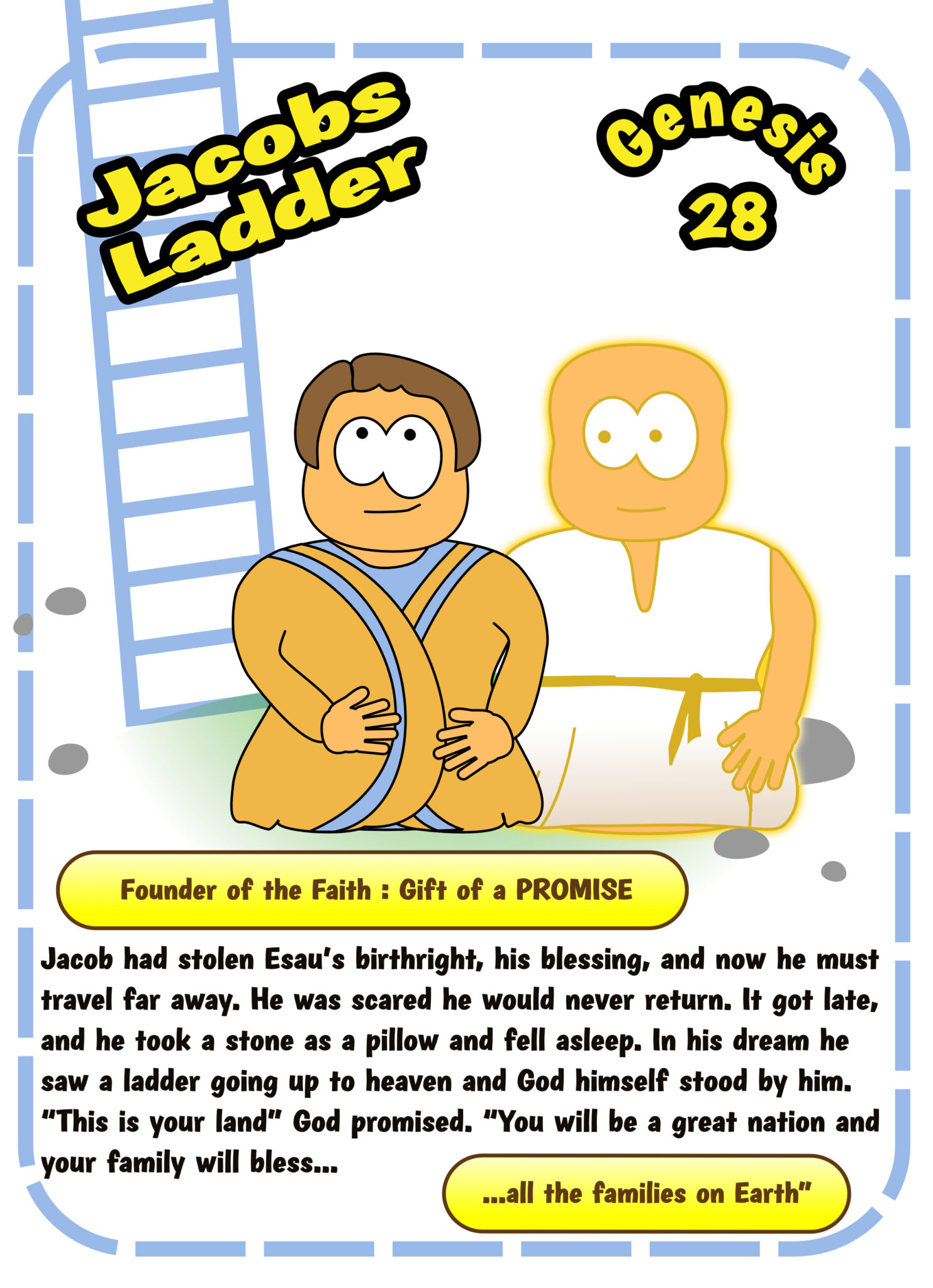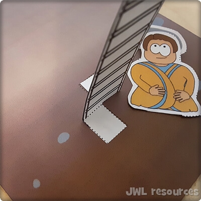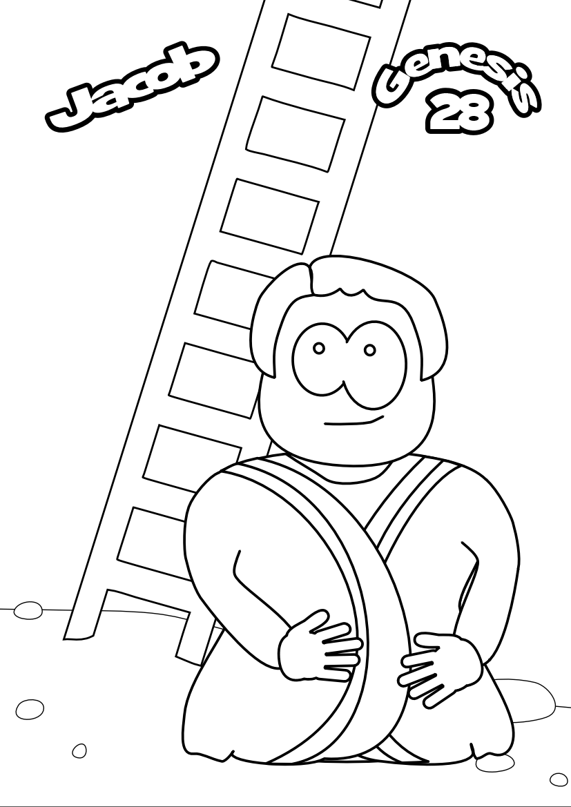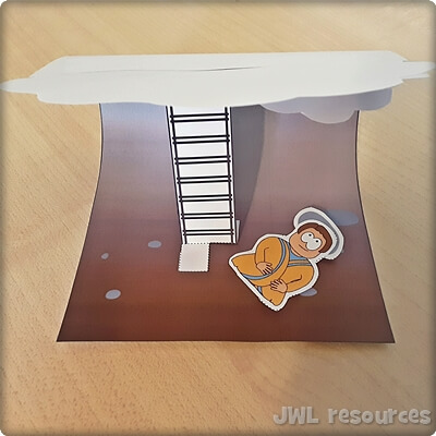 Attach the base of the ladder besides Jacob in the dotted boxes on the template.