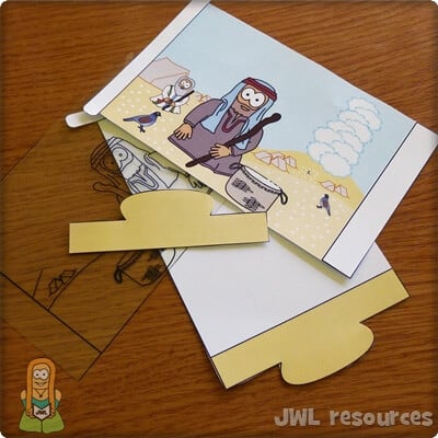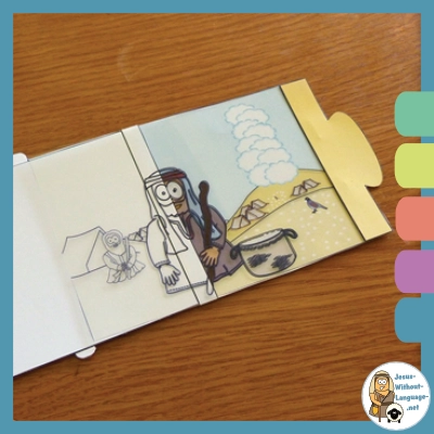 Your magic window craft is now complete. As you slide the two pieces apart, Aaron’s frown should literally leave him and manna will appear on the ground and in the basket.
