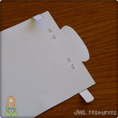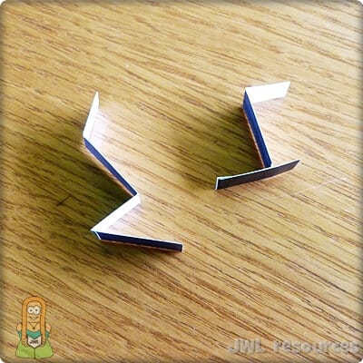 Turn your craft over and fold the long thin pieces inwards. This will create a ‘stop’ when you slide your craft, preventing it from coming fully apart.