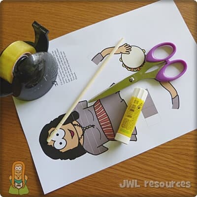To make into a puppet, you will also need some sticky tape and a stick or straw. I’d strongly recommend printing on thicker paper.