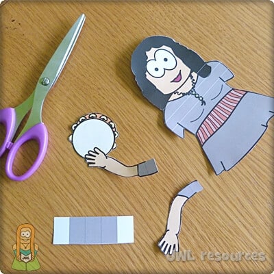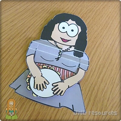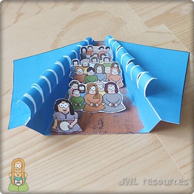 The Red Sea parted, the people passed through, then Miriam took her timbrel and led the women in a dance and song of joy. Join in Miriam’s dance and music with this moving paper craft.
