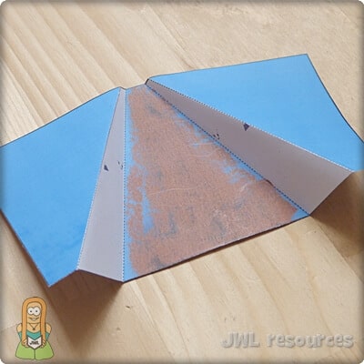 Split the folds, so one bends backwards (the side with the timbrel) and the other forwards. It’s worth taking an extra second to make sure these folds are right before continuing.