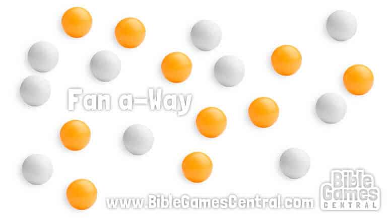 Up to 4 players can play at a time. If you have more than 4 players, either take turns to play, or set up multiple sets and play in teams to compete against each other: Place a Hula hoop in the middle of the room. Place 20 ping pong balls inside the Hula hoop (2 different colors, 10 each). (Consider using fewer ping pong balls for younger children.) Give each player a paper plate to use as a fan. On “go”, work as a team to fan the ping pong balls. The goal is to separate the two colors with a “path” between them. If the ping pong balls are knocked outside of the Hula hoop, place them back in the middle and continue playing. Use this game to introduce the story of Moses and the parting of the Red Sea.