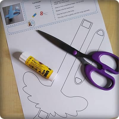 To make this craft, you will need the 1-page template printout, scissors, and glue. (There is no colour template)