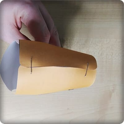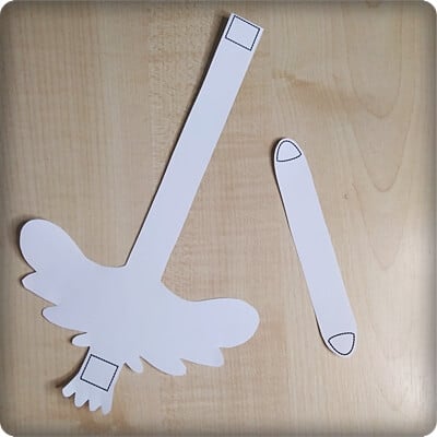Add glue to the small boxes on the ends of the larger shape – the body piece.