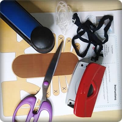 To make this craft, you will need the 1-page template printout, scissors, a stapler, a standard sized hole punch and some string, ribbon, or wool.