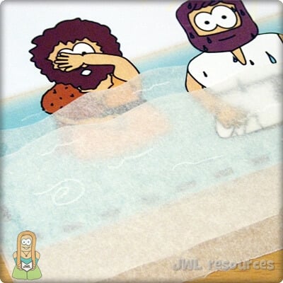 One day, Jesus came to see John. John saw him coming and knew exactly who he was. He told his disciples, “This is the one I meant when I said, ‘One who is more powerful than I am is coming after me. I am not worthy to stoop down and untie the strap of his sandals. I baptise you with water, but he will baptise you with the Holy Spirit.’”
