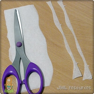 Cut a gentle wavy line along the top of the baking parchment pieces. Doing this 2 at a time is fine, just flip the piece later.