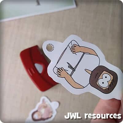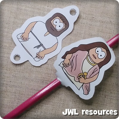 Slide Jesus and Mary Magdalene onto the pencils using the two holes.