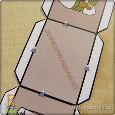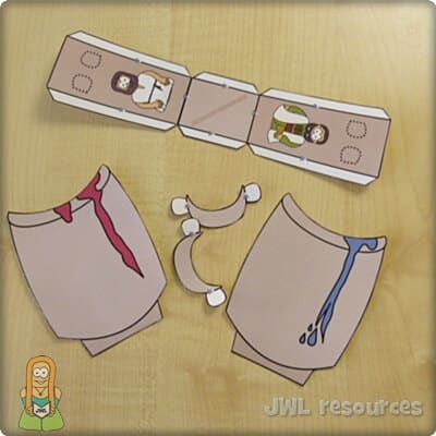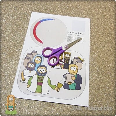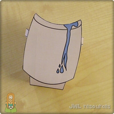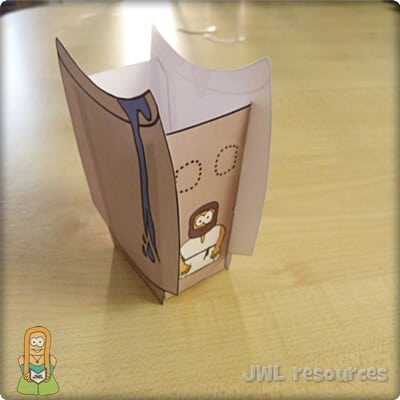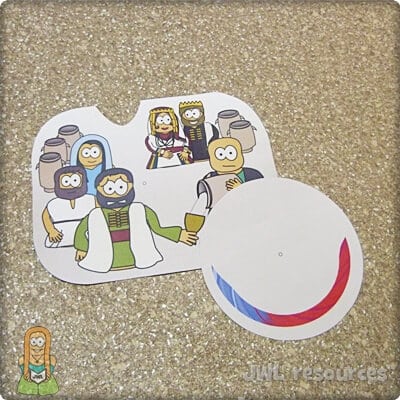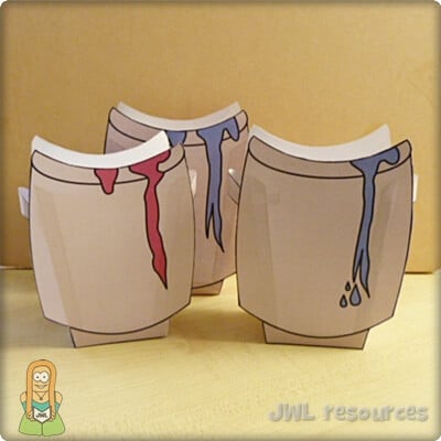 This is a classic craft for an ever popular story. It used a small window and a split pin to show the water changing into wine. When the transformation took place is unknown, but that water was often added to wine is a staple fact of the time and region. This craft is quick and simple to do, it’s also a good craft for younger groups and the cutting is very forgiving – though I’d recommend preparing by removing the window in advance.