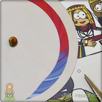 To make this craft, you will need the 1-page template printout, scissors, and a split pin (brad).