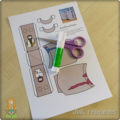 To make this craft, you will need the 1-page template printout, scissors, and some paper glue. This craft works best printed on thin card, but paper will work.