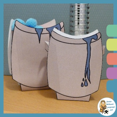 The wedding at Cana miracle hinges on the collection of stone water jars. These empty contains give you a springboard for discussing how they can be filled. Coloured candy or popcorn would be great for taking home, or create an interactive play space with bright pompoms.