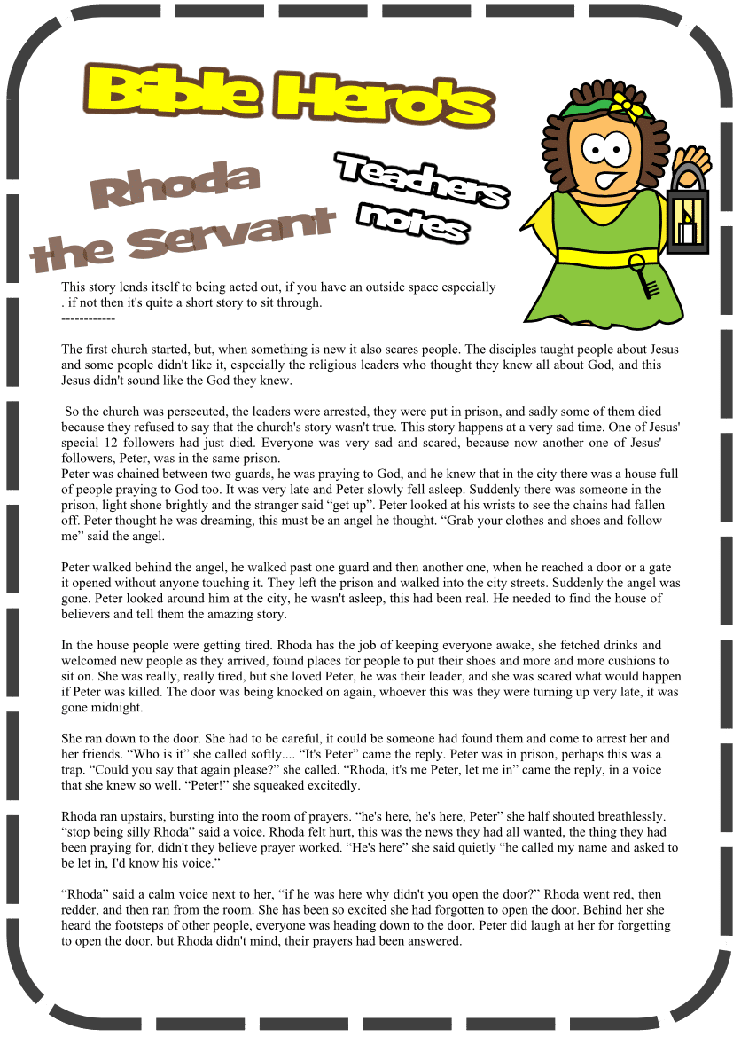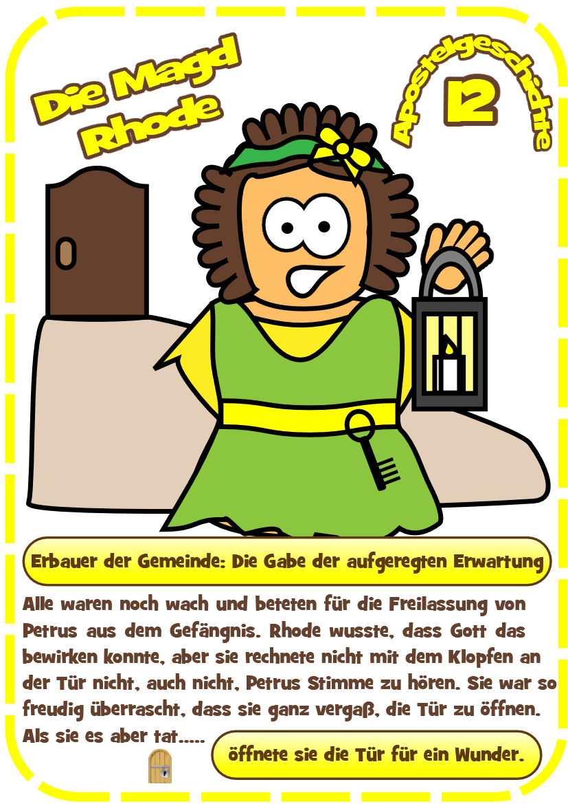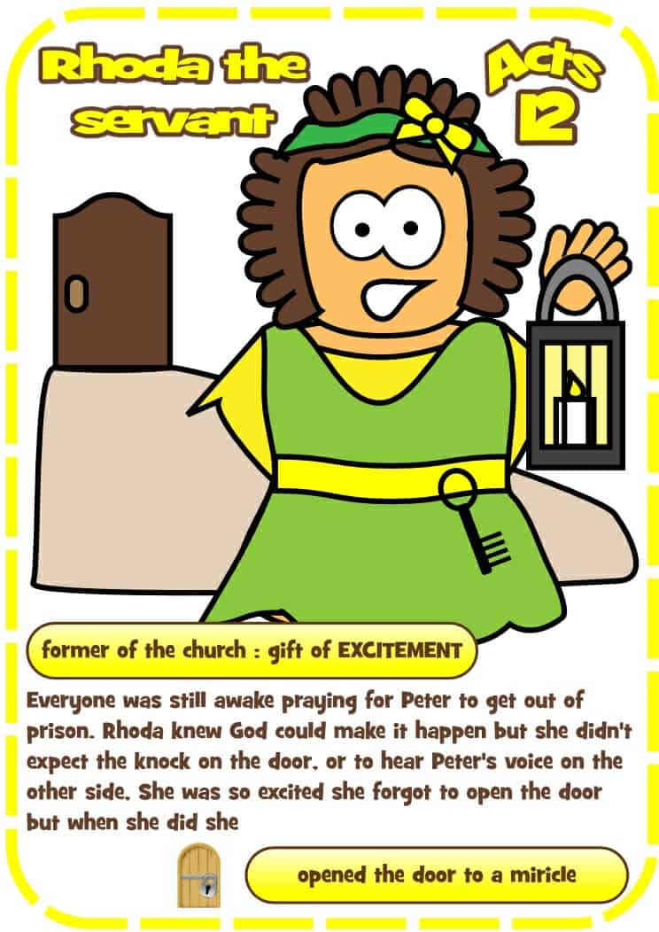 Here are the images you need for the hero’s attributes linked to Rhoda’s Discovery (Acts 12).