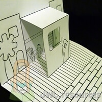 The pop-up house is a simple craft and can be turned into a little storytelling stage. The basic concept is straightforward and I would recommend getting teens to make their own design. younger children will probably be better with a template.
