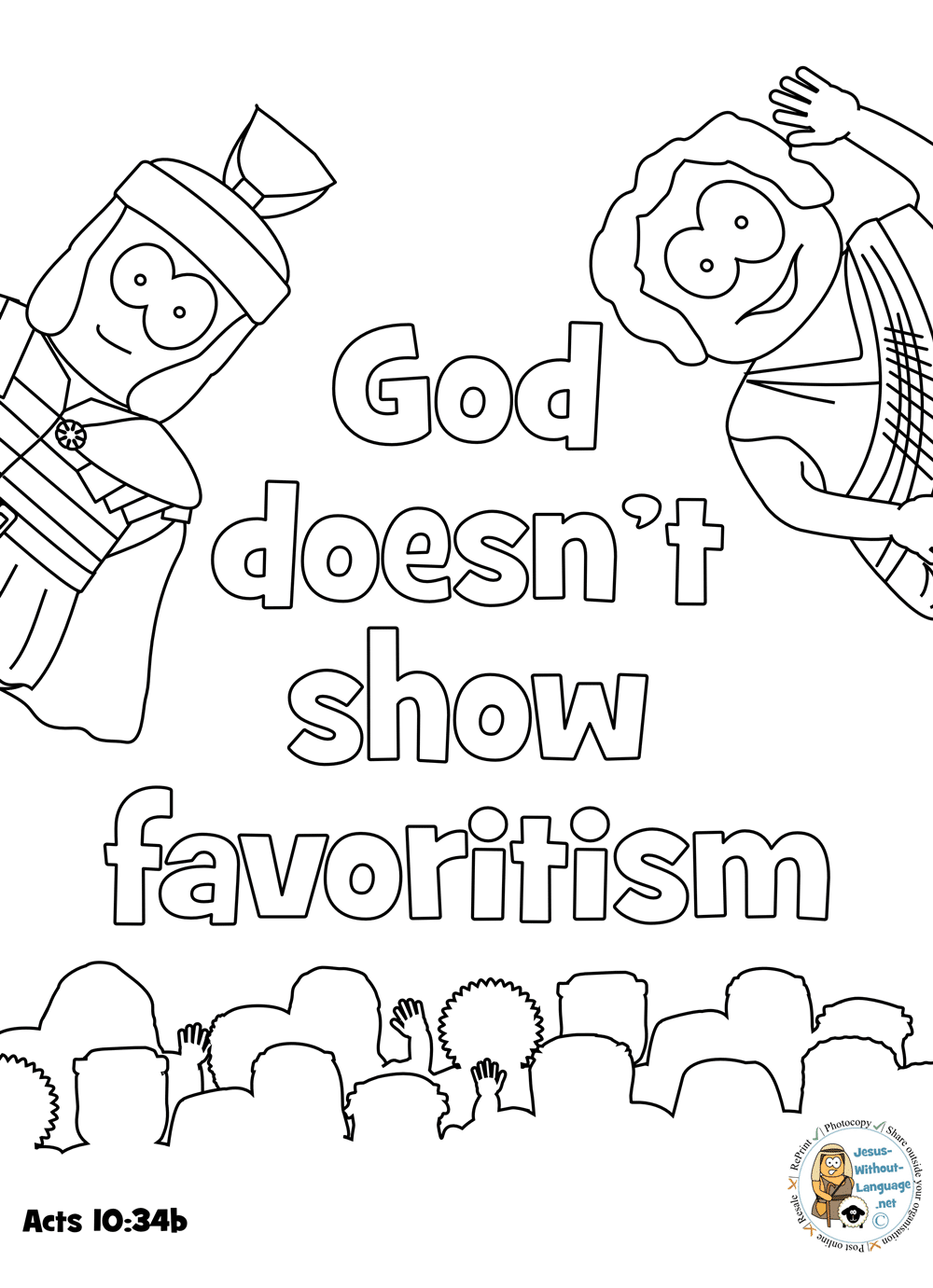 “I see now God does not have favourites,” he said, and the crowd went quiet. It had always seemed like God had favourites; the Israelites were God’s favourites, weren’t they? “In every nation there are people who do what is right in God’s eyes,” Peter continued, and then he went on to tell them all about Jesus, about how Jesus had brought his message to God’s people but told them to tell the news everyone. The Jesus who had died and returned. The Jesus who had spoken to Gentiles. The Jesus who had eaten with people the Jewish rules said you should avoid. The Jesus he still followed.