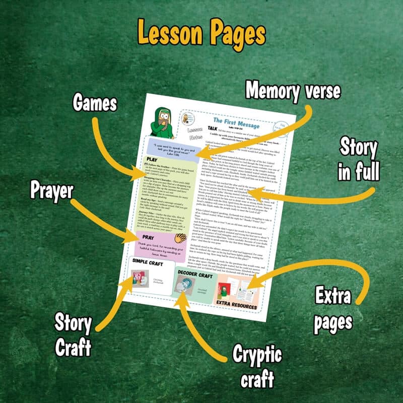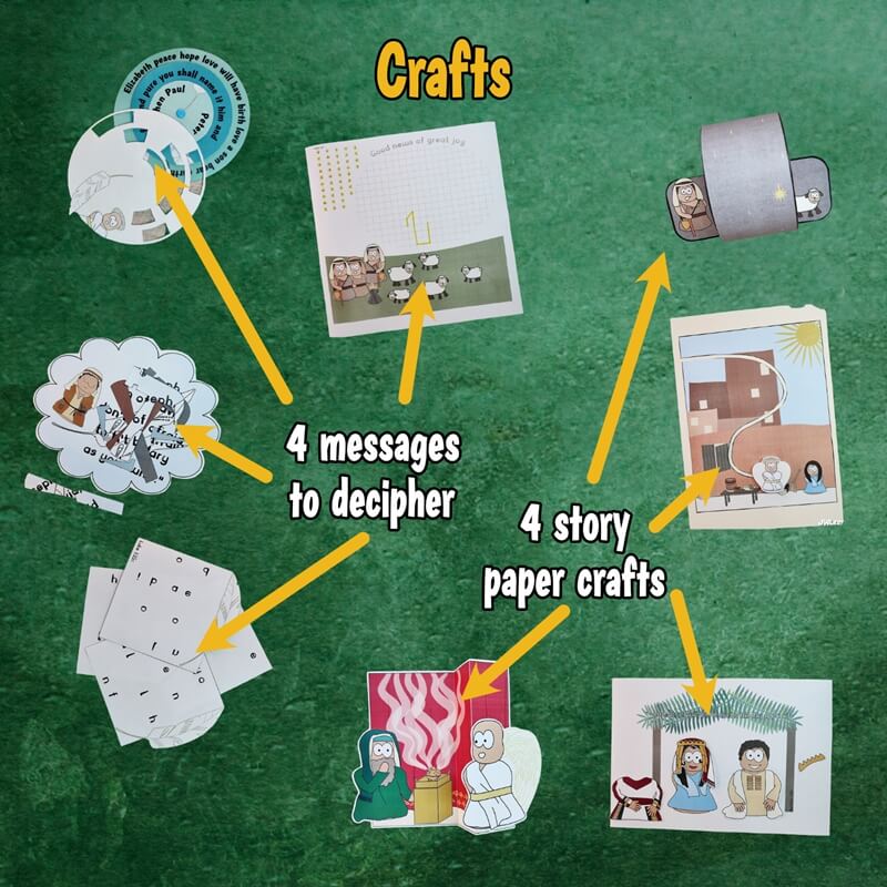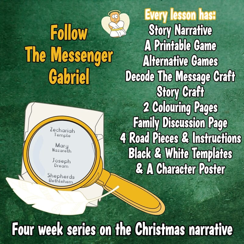 Follow the angel Gabriel as he meets Zechariah, Mary, Joseph and the shepherds through the classic Christmas bible passages. Help him decode the messages he needs to share though cryptic crafts, build a road that will track your journey, and discover a new printable games each week.