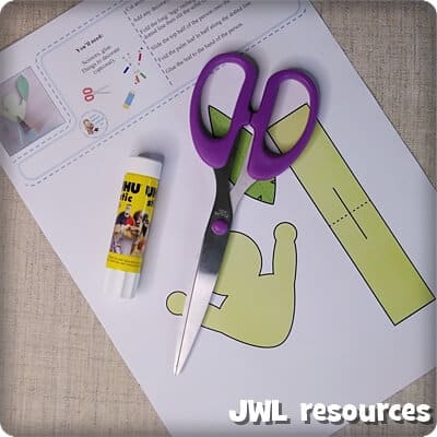 To make this craft, you will need the 1-page template printout, scissors, and some paper glue.