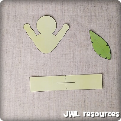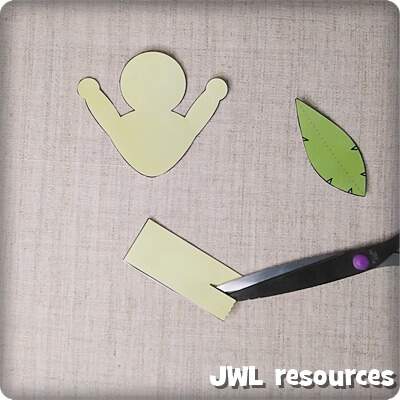 Fold the leaf in half along the dotted line and glue the leaf to a hand.