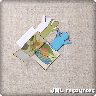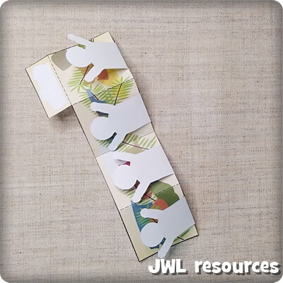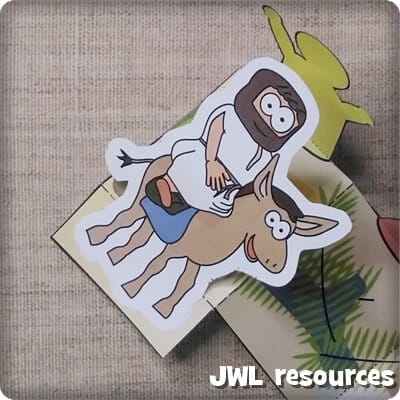Hold either end of your creation in each hand and gently move your hands closer and further apart to see the donkey ‘walk’ and the crowd move