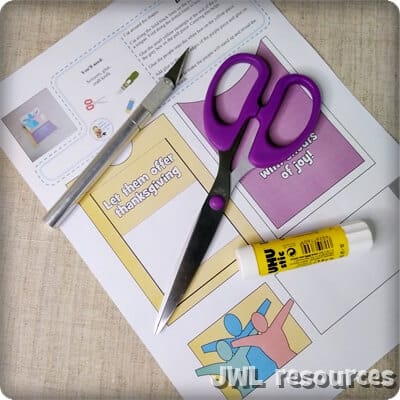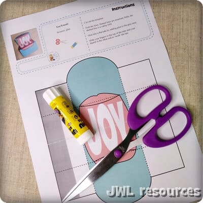To make this craft, you will need the 1-page template printout, scissors, a craft knife and glue.