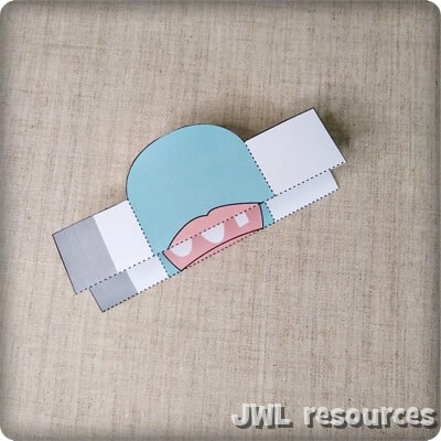 Cut along the bold black lines on the yellow piece to make a ‘tongue’ before you start cutting out.