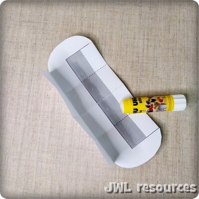 Add some glue along the grey box and make your ‘tube’.