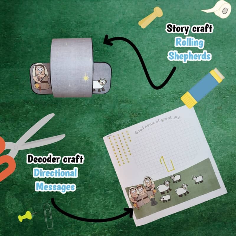 Follow the angel Gabriel as he meets The shepherds. Help him decode the messages he needs to share though a cryptic craft, make a classic craft about the encounter, build a road that will track your journey, and discover a new printable game.
