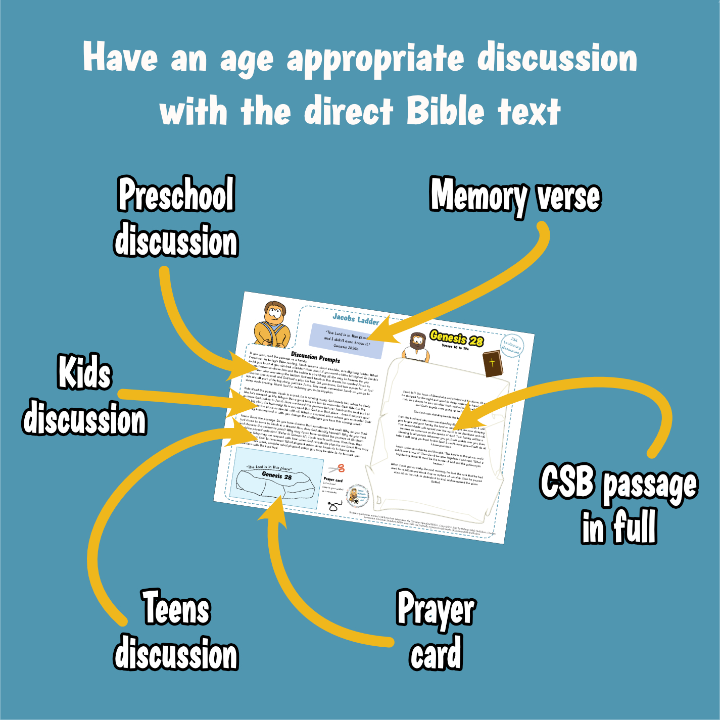 Kids ministry lesson on the teaching about Jacob’s dream of a ladder to heaven as found in Genesis 28. The pack looks at the imagery of the ladder, the stone marker of a holy place, and the promise from Abraham now continued in Jacob. This pack focuses on the idea of Jacob continuing God’s big story for his people and how we are part of that.