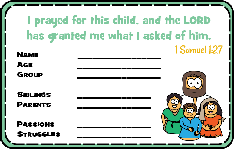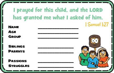 Be specific about the child you are praying for. Bring the child to mind if you know them, or use whatever information the card gives. Lift this individual to God as his child and his servant in his kingdom.
