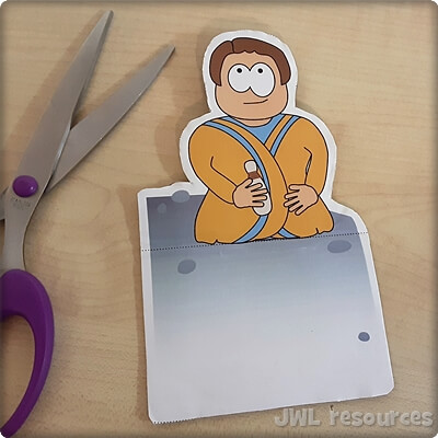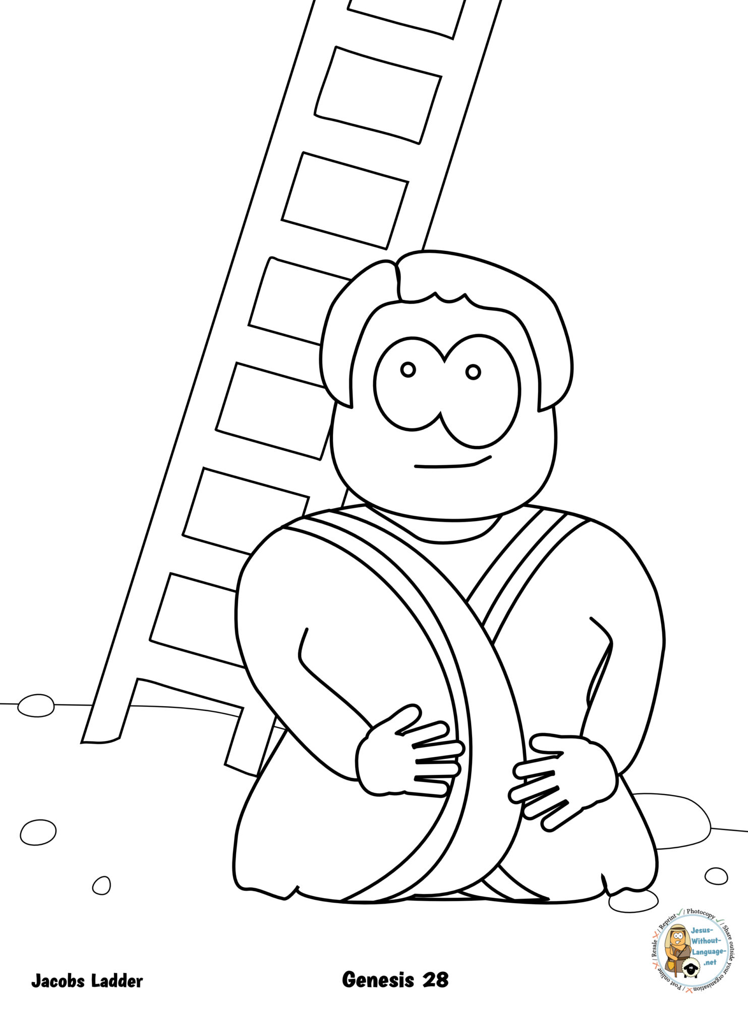 Attach the base of the ladder besides Jacob in the dotted boxes on the template.