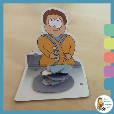 Fold the tabs on Jacob and the stone backwards