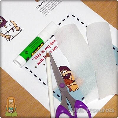 To make this craft, you will need the 1-page template printout, scissors, baking paper and some paper glue. (Use double-sided tape if you are in a rush.)