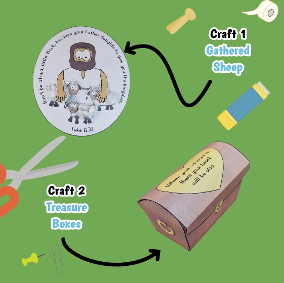 Kids ministry lesson on the teaching about Treasure in Heaven from Luke 12. In it, Jesus talks about the fear of losing power and riches and how that stops us from living life to the fullest. This pack focuses on the idea of God delighting in giving his flock the riches of heaven.