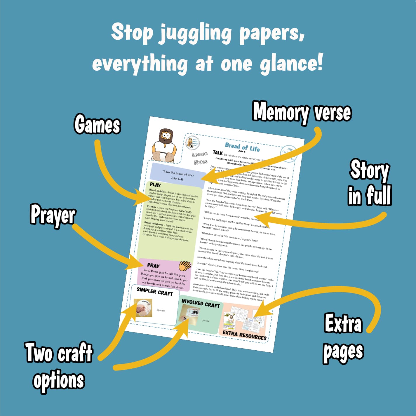 This pack is perfect for a short kids Sunday school session. A great lesson to use in the home, church, or classroom setting.