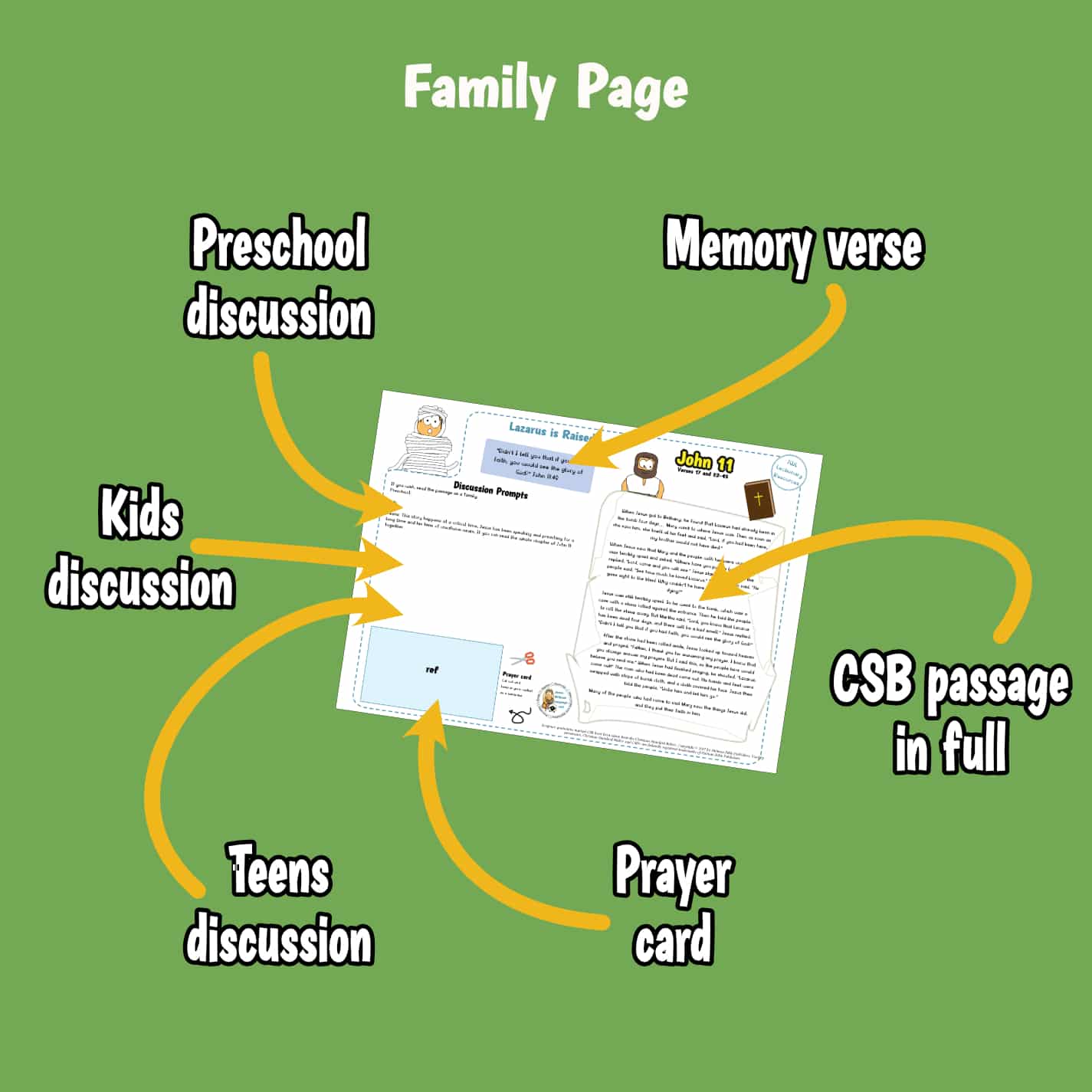 Kids ministry lesson on the resurrection of Lazarus in John 11. In it, Jesus returns to Mary and Martha’s after their brother’s death and calls him back to life. This pack covers various topics but does look at grief.