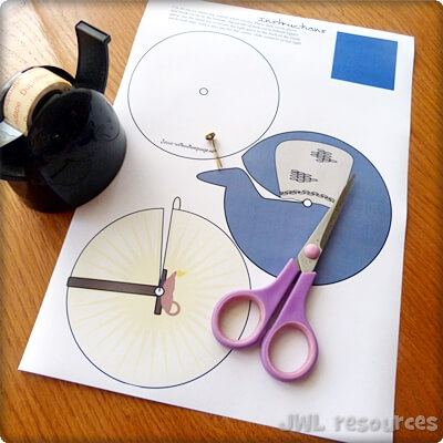 To make this craft, you will need a pair of scissors, sticky tape (optional), the printout and a split pin. This craft works fine on standard paper but would also work on thin card.