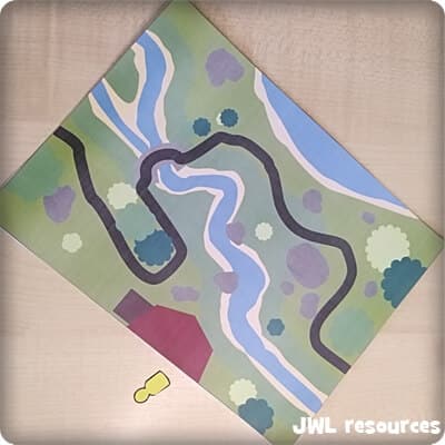 Back onto card, if you didn’t print on card, then cut out the map and person.